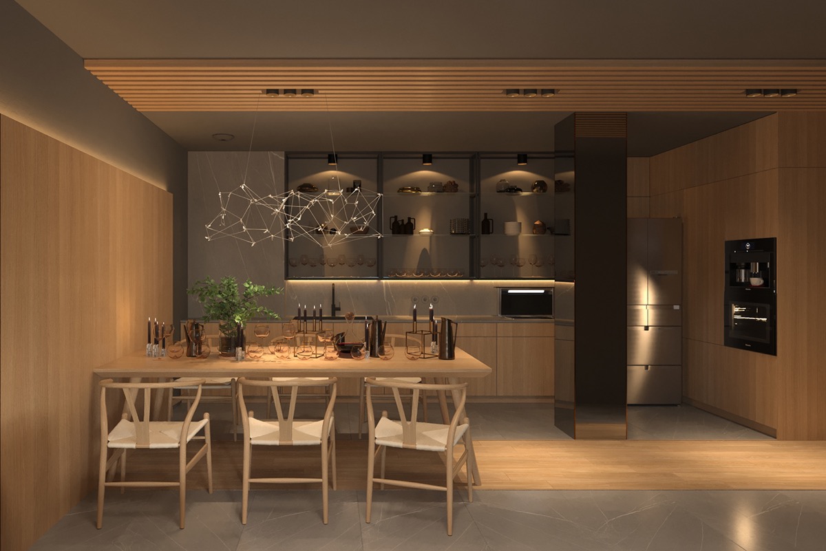 Make the kitchen and dining area more interesting with different layers of lighting.