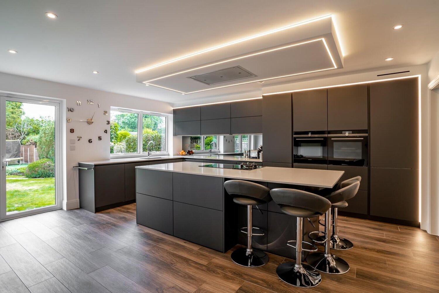For the primarily used part in the kitchen, like the counter, it is better to have the strip lights installed under the cabinets and avoid the visible lamp to reduce the unsightly reflection on the counter.